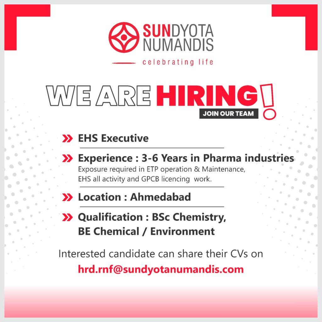 SUNDYOTA NUMANDIS- Hiring EHS Executive at Ahmedabad location