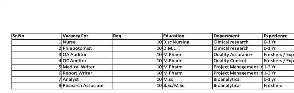 Vacancy For : QA Auditor, QC Auditor, Phlebotomist, Medical Writer, Report Writer, Analyst, Research Associate