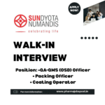 (Note: Applicants should be from Pharmaceutical finished backgrounds only)