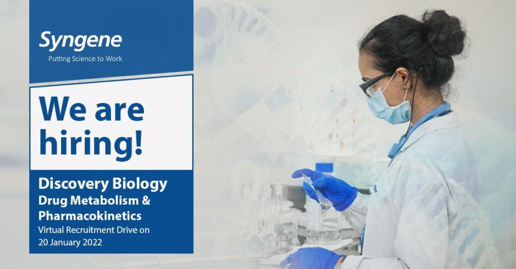 We are conducting a virtual recruitment drive on 20-Jan-22 (Thursday), for multiple requirements in the Discovery Biology-Drug Metabolism and Pharmacokinetics group. Details as below.