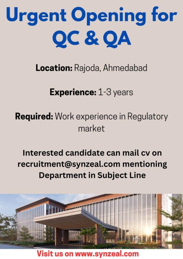 Kindly mention Department name in Subject lineJob Opening for Qc & QA