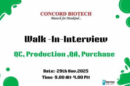 Pharma Jobs 2025: QC, Production, QA, Purchase Vacancies at Concord Biotech (BSc/MSc/B.Pharm)