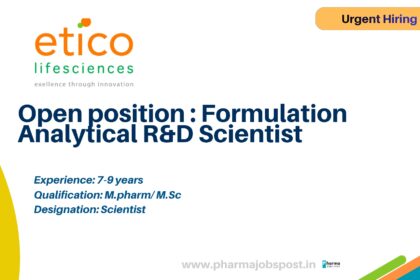 Etico Lifesciences Announces Hiring for Formulation Analytical R&D Scientist – Apply Now