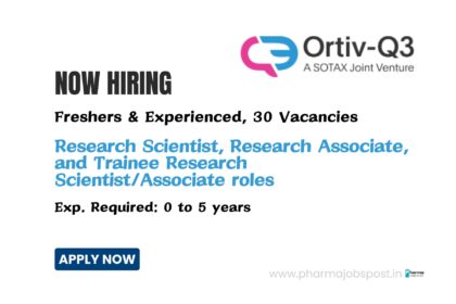 Ortiv-Q3 Walk-In Drive 2025 in Ahmedabad | Hiring Research Scientists & Associates (Freshers & Experienced, 30 Vacancies)