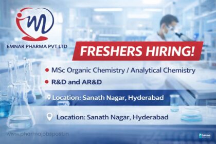 Emnar Pharma Pvt Ltd Hiring Freshers for R&D and AR&D – MSc Organic / Analytical Chemistry | Hyderabad