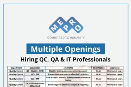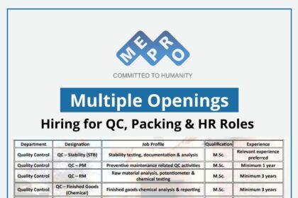 Mepro Pharmaceuticals Hiring QC, QA & IT Professionals | Pharma Jobs in Gujarat