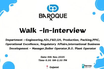 Baroque Pharma Walk-in Interview 2025: Multiple Openings for M.Pharm, B.Pharm, B.Sc & ITI Candidates in Anand, Gujarat | Apply Now