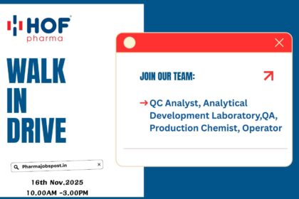 HOF Pharma Hiring 2024: QC, Production, Engineering Jobs in Sanand & Ahmedabad, Gujarat (HPLC, Liquid Section, Plant Maintenance)