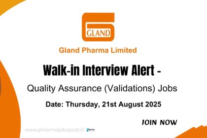 Walk-In Interview at Gland Pharma – Quality Assurance (Validations) Jobs | 21st August 2025| Pashamylaram