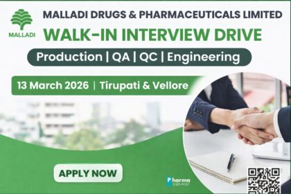 Malladi Drugs & Pharmaceuticals Walk-In Interview 2026 | Production, QA, QC & Engineering Jobs
