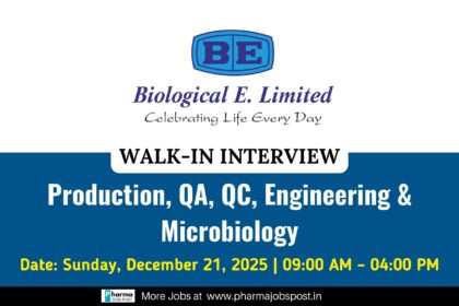 Biological E Limited Jobs 2025 | Production, QA, QC, Engineering Walk-In