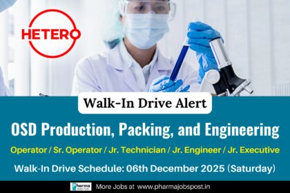 Hetero Labs Walk-In Interview – Multiple Openings in OSD Manufacturing | Jadcherla Unit-V