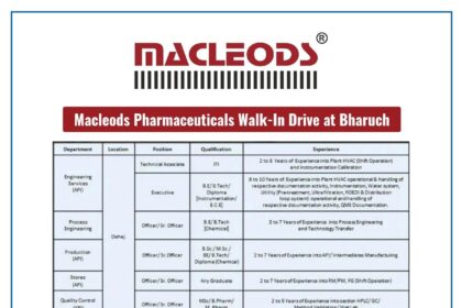 Macleods Pharmaceuticals Walk-In Drive 2026 at Bharuch | Production, QC, QA, Engineering Jobs