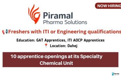 Piramal Pharma Hiring Apprentices at Specialty Chemical Unit, Dahej – 10 Open Positions
