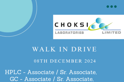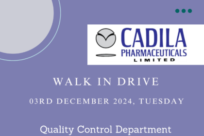 Cadila Pharmaceuticals Ltd Walk In Drive on 03rd December 2024, Tuesday for Quality Control Department