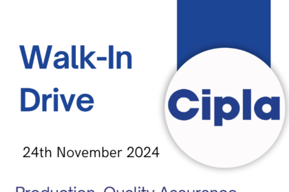 Join Cipla: Walk-In Interview for Pharma Jobs in India on 24th Nov 2024