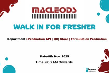 Macleods Pharma Walk-In Drive 2025 at Ahmedabad | QA, QC, Production & Fermentation Jobs | B.Pharm, M.Pharm, M.Sc, B.Sc Apply Now