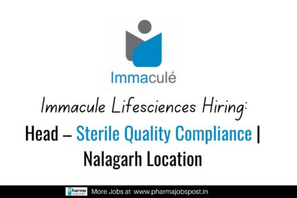 Immacule Lifesciences Hiring: Head – Sterile Quality Compliance | Nalagarh