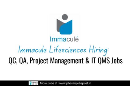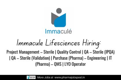 Immacule Lifesciences Hiring in Nalagarh – QC, QA, Project Management & IT QMS Jobs