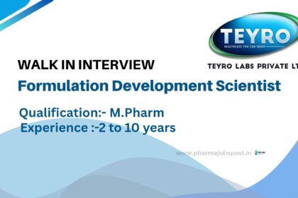 Teyro Labs Announces Walk-In Interview for Formulation Development Scientist | 30 November 2025