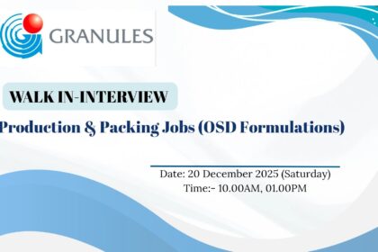 Granules Walk-in Interview: Production & Packing Jobs (OSD Formulations) in Miyapur, Hyderabad