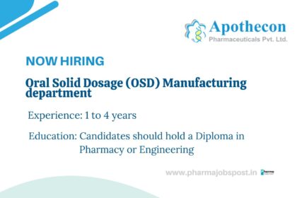 Apothecon Pharmaceuticals Hiring 2025: Careers in API and Formulation in Vadodara