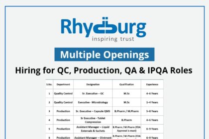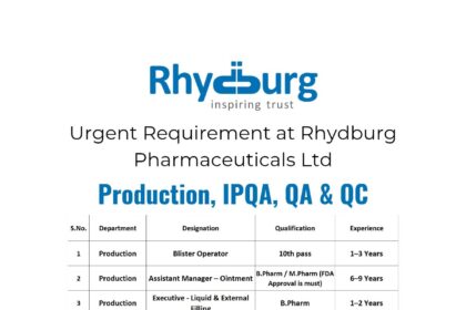 Rhydburg Pharmaceuticals Ltd Hiring for Production, IPQA, QC, Engineering & More – Apply Now