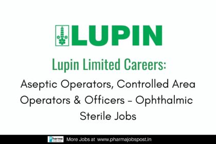 Lupin Limited Hiring Aseptic Operators, Controlled Area Operators & Officers – Ophthalmic Sterile Jobs Pithampur