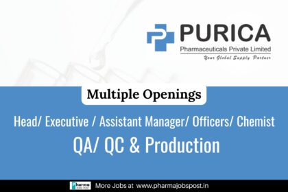 Pharma Jobs in Ahmedabad – Purica Pharmaceuticals Hiring QC, QA & Production Chemists in Gujarat