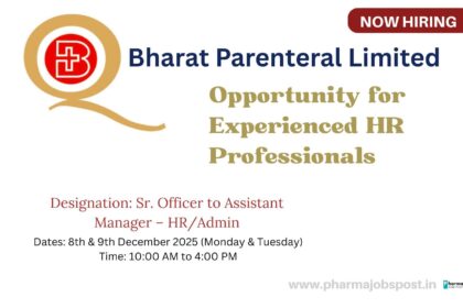 Bharat Parenterals Ltd Announces HR/Admin Vacancy: Opportunity for Experienced HR Professionals