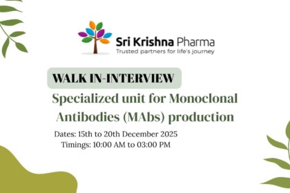 Sri Krishna Pharma Walk-In Interviews 2025 for MAbs Manufacturing Roles at Shameerpet