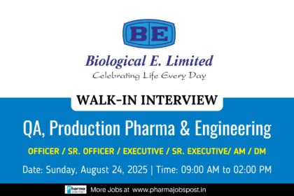 Walk-In Interview 2025 at Biological E. Limited | Pharma Careers in Injectables