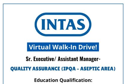 Virtual Walk-In Drive at Intas Pharmaceuticals for Sr. Executive/Assistant Manager – Apply Now