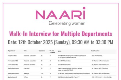 Naari Pharma Walk-In Drive 2025 | Hiring for R&D, QA, QC & Production at Dehradun on 12th Oct