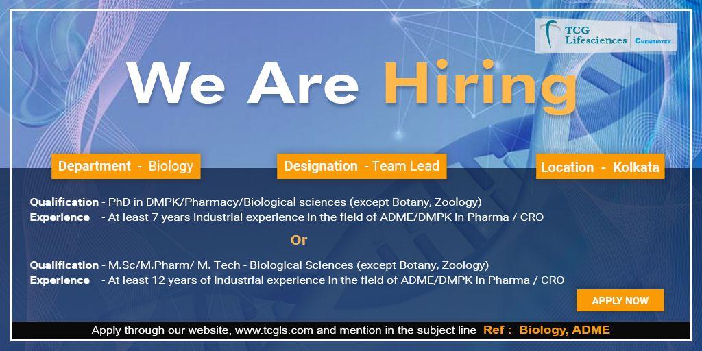 Qualification – Ph.D. in DMPK/Pharmacy/Biological sciences (except Botany, Zoology)