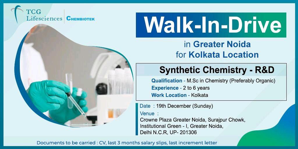 TCG Lifesciences Pvt Ltd., Walk-in Drive in Greater Noida on 19th Dec’21 for Synthetic Chemistry- R&D Department