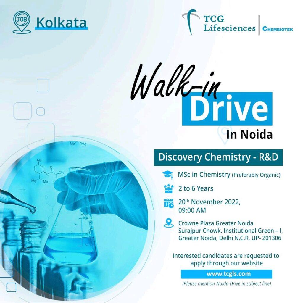 TCG Lifesciences Pvt Ltd. Walk-in-Drive in Noida on the 20th of November 2022 for Discovery Chemistry – R&D department