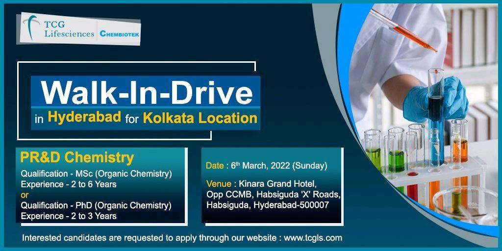 TCG Lifesciences Walk-in-Drive in Hyderabad on the 6th of March(Sunday).