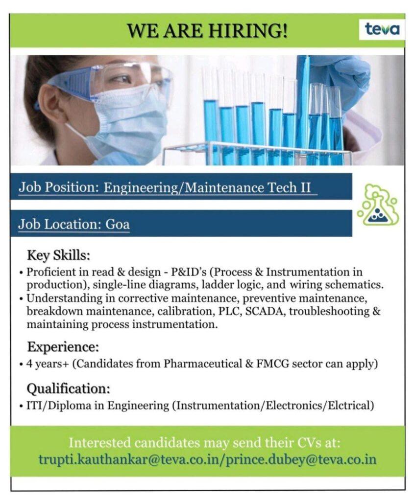 Interested candidates may send their CVs at: trupti.kauthankar@teva.co.in/ prince.dubey@teva.co.in