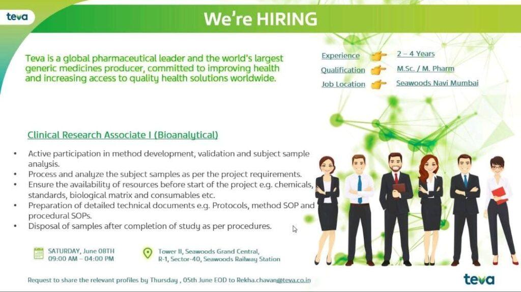 Teva walk in interview for Clinical Research Associate I (Bioanalytical) on 8th June 2024