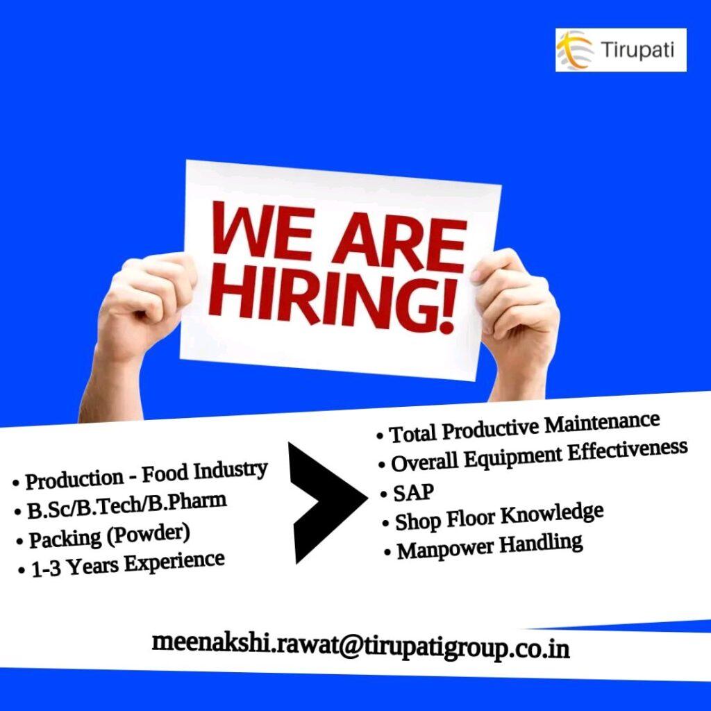 Tirupati Group Urgent Hiring for Production Packing Officer (Food Industry)