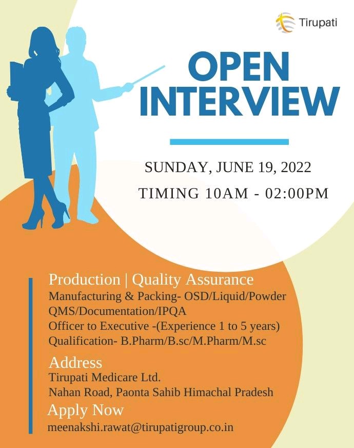 Tirupati Group Walk In Drive for Quality Assurance | Production Department On 19th June 2022 (Sunday)