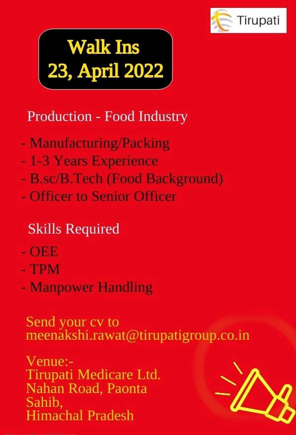 Tirupati Group Walk-In Drive on Saturday | April 23, 2022 ||FMCG/Sports Nutrition