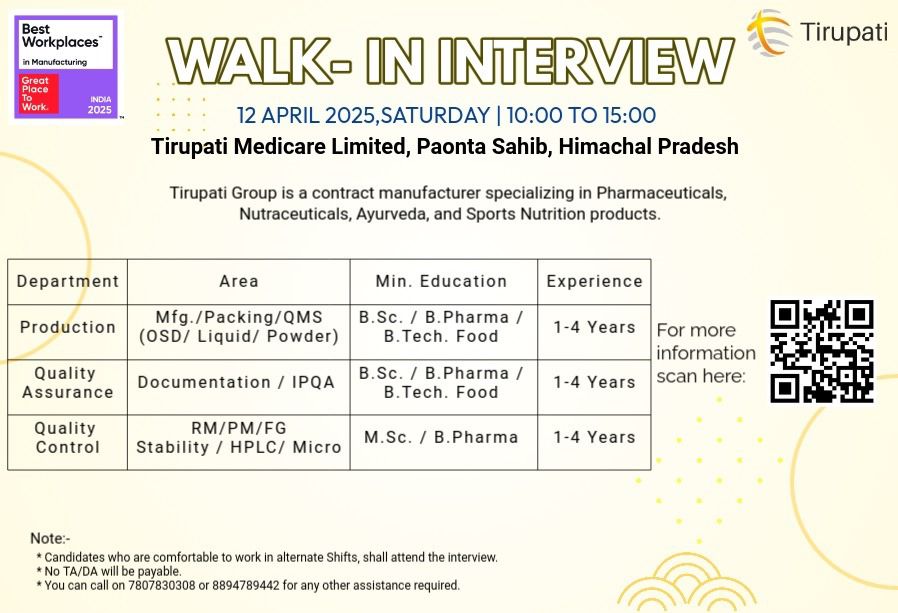 Qualification:B.Sc. / B.Pharma / B.Tech. Food