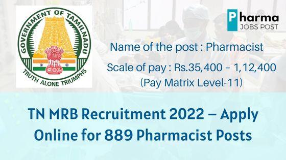 TN MRB Recruitment 2022 – Apply Online for 889 Pharmacist Posts