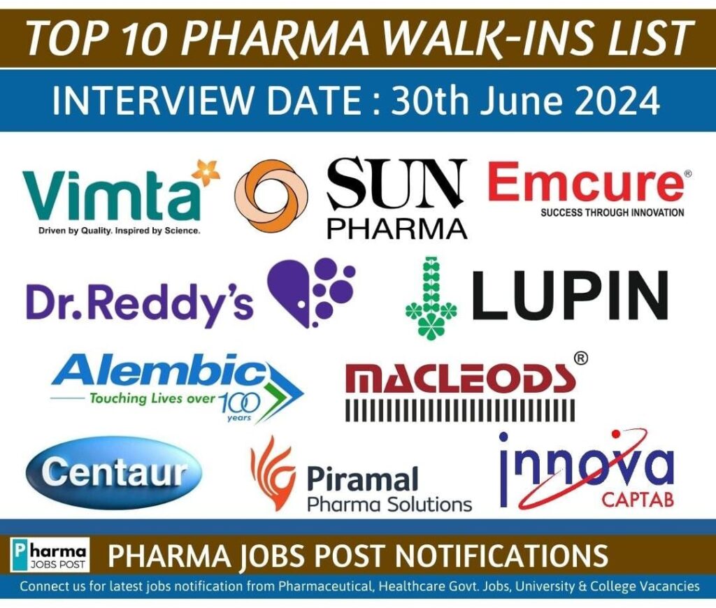 TOP 10 PHARMA WALK-INS INTERVIEW LIST – 𝟯𝟬𝘁𝗵 𝗝𝘂𝗻𝗲 𝟮𝟬𝟮𝟰