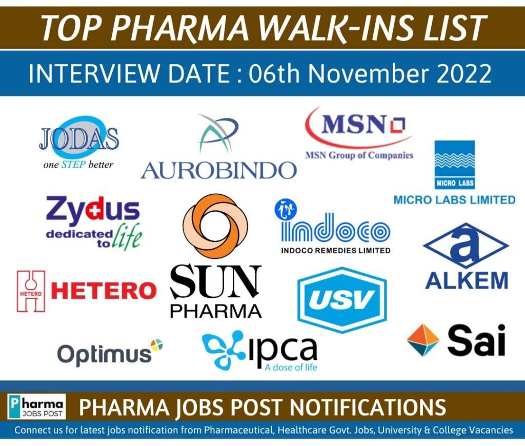 TOP PHARMA WALK-INS INTERVIEW LIST – 06th November 2022
