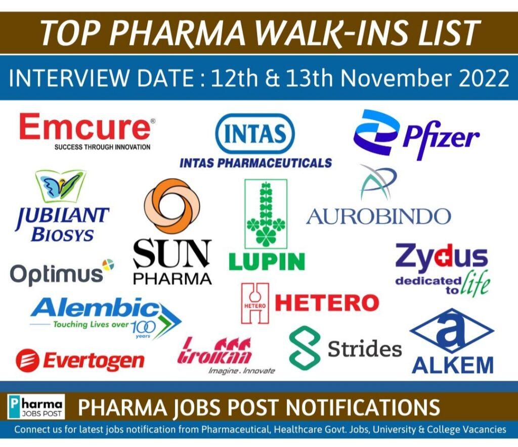 TOP PHARMA WALK-INS INTERVIEW LIST – 12th & 13th November 2022