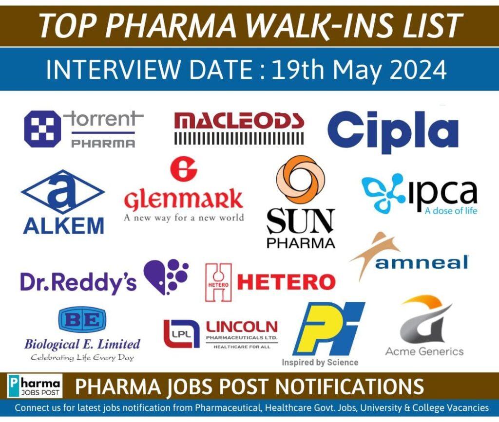TOP PHARMA WALK-INS INTERVIEW LIST – 19th May 2024