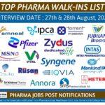 TOP PHARMA WALK-INS INTERVIEW LIST – 27th & 28th August, 2022 (Sunday)